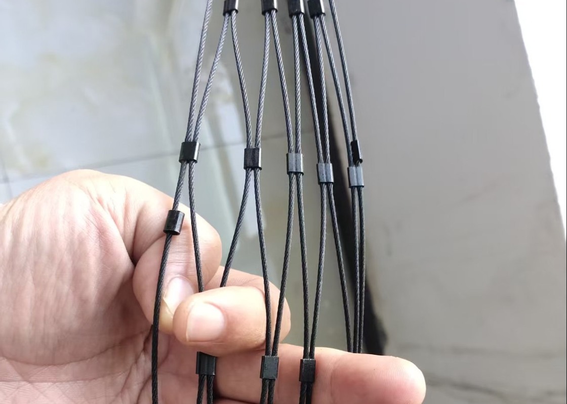 On the basis of the natural color stainless steel wire cable mesh, it becomes a black cable mesh through a black oxide process.