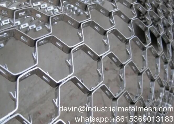 ss309 Hex mesh grid refractory lining is a hexagonal cellular mesh grating specifically designed for reinforcing both linings and flooring. The hex steel mesh acts as a surface framework to hold cement or refractory in position, and relieves stress in the lining's upper crust, which prevents spalling and cracking. As a result of hex metal's strength and unique design, abrasion and corrosion are retarded and refractory life is significantly extended. Even hot gaseous substances cannot erode the refractory because they are reflected away from the surface by the metal cellular grid.