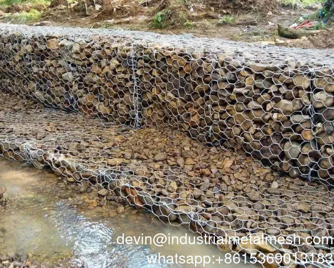 Steel wire hexagonal mesh has strength and flexibility to withstand forces generated by water and earth masses, and the pervious nature of the gabion allows it to absorb and dissipate much of that energy. This is evident on coast protection installations where gabion structures remain effective long after a massive rigid structure fails. Additionally, the double twisted hexagonal mesh won’t unravel if cut.